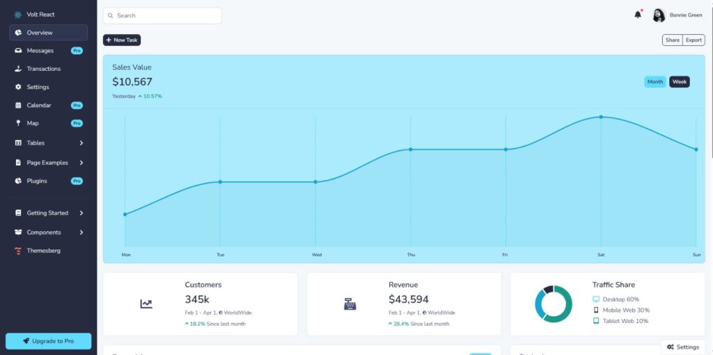 3. Volt – Free Responsive React Dashboard